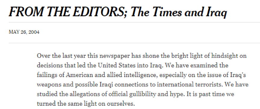 当时,自诩客观独立的美国《纽约时报》很好地充当了美国政府的政治宣传工具,把美国政府内部编造出的大规模杀伤武器的虚假信息,当成独家爆料刊登在了自己的报纸上,就这样把一个谎言“洗白”成了美国政府武力入侵一个主权国家的合法理由。
