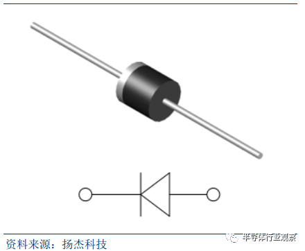 国际大厂退出,国内具有价格优势。 功率二极管门槛低、毛利小,国际大厂逐渐退出功率二极管市场,全球功率二极管生产重心可望逐渐转移至中国大陆与中国台湾地区。由于大陆人工成本低、政策扶持半导体行业发展,在低价位二极管(一半整流二极管、快速整流二极管)上占据着优势,而目前国产二极管领先企业扬杰科技仅占据全球市场份额的 2.01%,未来有望持续替代进口,并抢占市场。而台湾二极管厂商以生产表面粘著型及其他高附加值产品为主,并朝着肖特基性、突波抑制器、静电保护原件及晶闸管等领域发展。