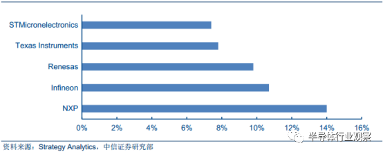 2016 年全球汽车半导体市场份额