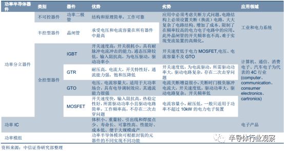 不同功率半导体器件的特性