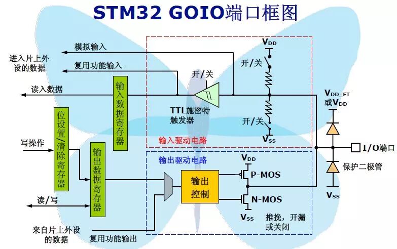 7、GPIO口貌似有两个反向串联的二极管用作钳位二极管。