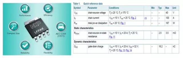 Nexperia新工艺产品LFPAK56封装的MOS管,面积只有5*6mm,而且还可以支持100A的电流输出,完美解决了小型化产品的应用。