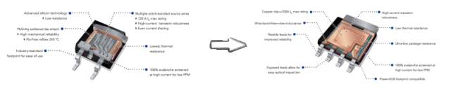 LFPAK56还有双管输出的,就是一个芯片封装了两个MOS管。没错!两个独立的MOS管,电流也能分别达到40A以上!以上!以上!!!